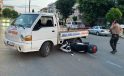 Motosiklet kamyonet altına girdi: Sürücüsü kazayı yara almadan atlattı
